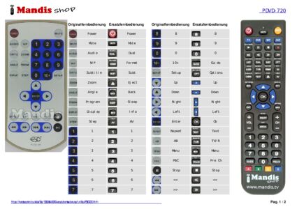 Ein Dokument ist enthalten, um die Verwendung der neuen Fernbedienung zu erleichtern, indem es die Tastenbelegung zeigt.