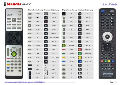Home > Marken > Fernbedienungen Acer > Fernbedienung für Acer RC-803V > Interaktive Tastenbelegung Acer RC-803V
