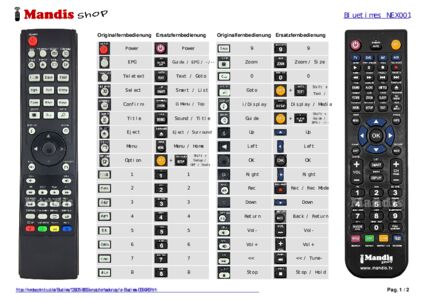 Ein Dokument ist enthalten, um die Verwendung der neuen Fernbedienung zu erleichtern, indem es die Tastenbelegung zeigt.