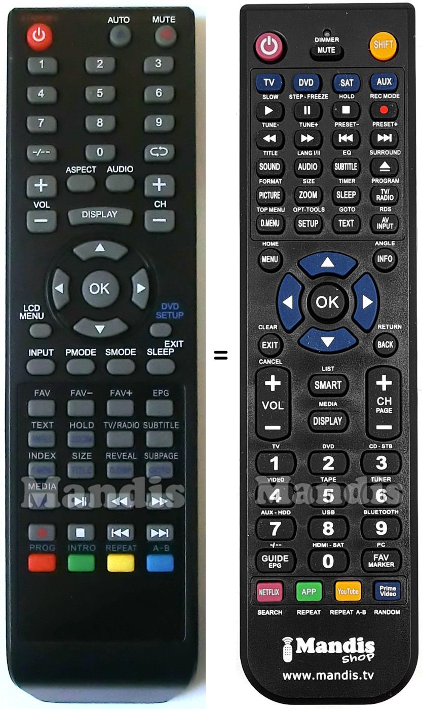 Wir bieten dir eine Ersatzfernbedienung an, die deine Originalfernbedienung in all ihren Funktionen vollständig ersetzt. Es handelt sich nicht um eine Universalfernbedienung, sondern um eine exakte Kopie mit identischen Tasten und Funktionen.