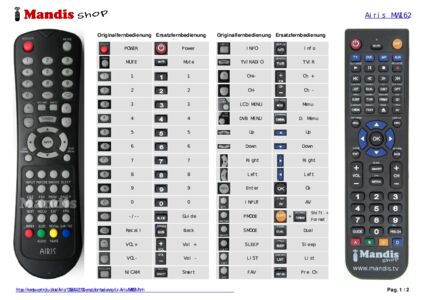 Ein Dokument ist enthalten, um die Verwendung der neuen Fernbedienung zu erleichtern, indem es die Tastenbelegung zeigt.