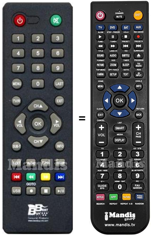 Wir bieten dir eine Ersatzfernbedienung an, die deine Originalfernbedienung in all ihren Funktionen vollständig ersetzt. Es handelt sich nicht um eine Universalfernbedienung, sondern um eine exakte Kopie mit identischen Tasten und Funktionen.