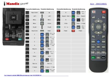 Home > Marken > Fernbedienungen Acer > Fernbedienung für Acer 25K010H001 > Interaktive Tastenbelegung Acer 25K010H001