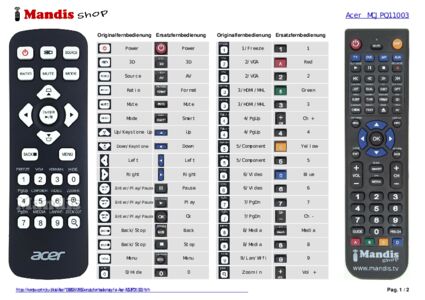 Home > Marken > Fernbedienungen Acer > Fernbedienung für Acer MCJPQ11003 > Interaktive Tastenbelegung Acer MCJPQ11003