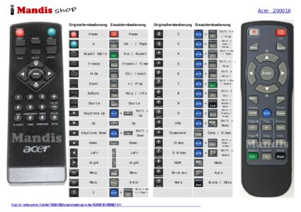 Home > Marken > Fernbedienungen Acer > Fernbedienung für Acer RC-260RR-190 > Interaktive Tastenbelegung Acer RC-260RR-190