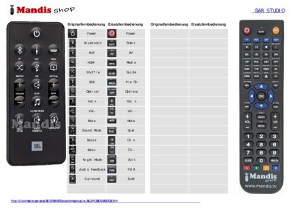 Ein Dokument ist enthalten, um die Verwendung der neuen Fernbedienung zu erleichtern, indem es die Tastenbelegung zeigt.