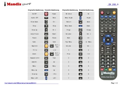 Ein Dokument ist enthalten, um die Verwendung der neuen Fernbedienung zu erleichtern, indem es die Tastenbelegung zeigt.