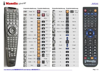 Ein Dokument ist enthalten, um die Verwendung der neuen Fernbedienung zu erleichtern, indem es die Tastenbelegung zeigt.