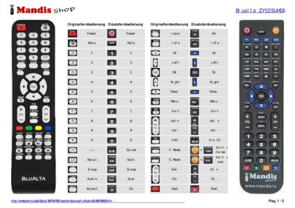 Ein Dokument ist enthalten, um die Verwendung der neuen Fernbedienung zu erleichtern, indem es die Tastenbelegung zeigt.