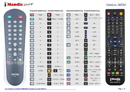 Ein Dokument ist enthalten, um die Verwendung der neuen Fernbedienung zu erleichtern, indem es die Tastenbelegung zeigt.
