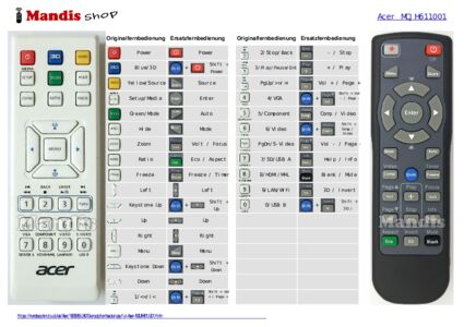 Home > Marken > Fernbedienungen Acer > Fernbedienung für Acer MCJH611001 > Interaktive Tastenbelegung Acer MCJH611001