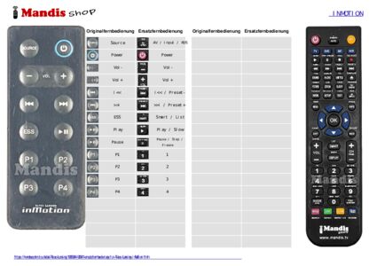 1. Betrachten Sie die Bilder der beiden Fernbedienungen: das Original (links) und das Ersatzgerät (rechts).