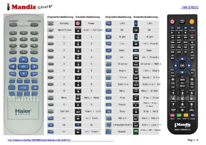 Home > Marken > Fernbedienung für Haier001 > Interaktive Tastenbelegung Haier001