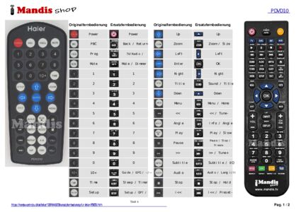 Ein Dokument ist enthalten, um die Verwendung der neuen Fernbedienung zu erleichtern, indem es die Tastenbelegung zeigt.