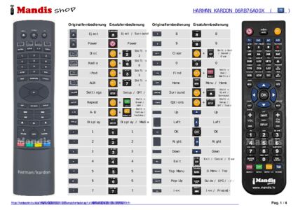 Home > Marken > Fernbedienungen HARMAN KARDON > Fernbedienung für HARMAN KARDON 06RB76A00X > Interaktive Tastenbelegung HARMAN KARDON 06RB76A00X