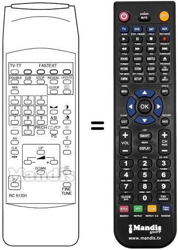 Fernbedienung, die das Original und die Gesamtheit seiner Funktionen, vollständig ersetzt. Es handelt sich jedoch nicht um eine Universalfernbedienung sondern um eine Fernbedienung die das Original ersetzt. Sie erhalten eine nach Einlegen der Batterien sofort einsatzbereite Fernbedienung. Jegliches Programmieren entfällt. Wir geben umfassende Garantie dafür, dass diese Fernbedienung alle Funktionen der Originalfernbedienung erfüllt.
