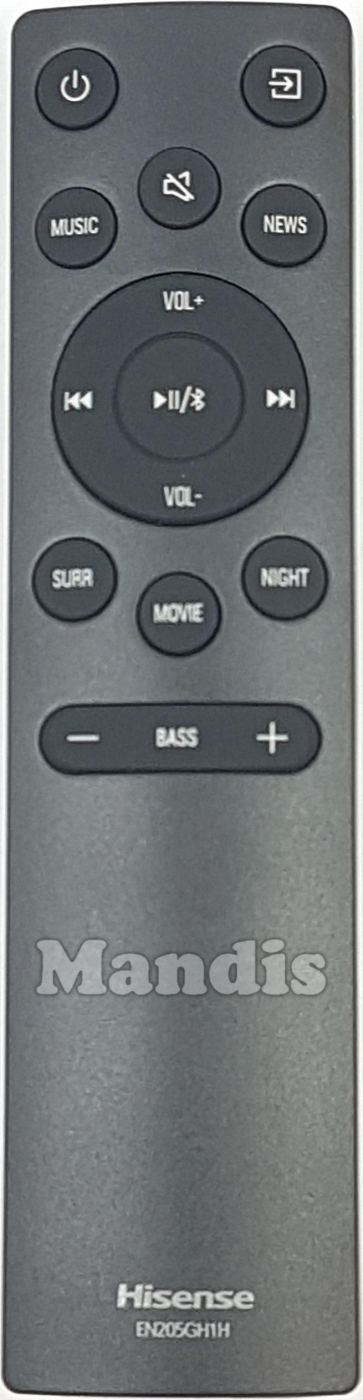 Fernbedienung Original EN205GH1H zur Steuerung der Soundbar der Marke Hisense. Es handelt sich um eine Originalfernbedienung.