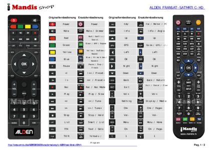 Haben Sie die Fernbedienung Ihres Alden SATMATIC HD Decoders verloren? Keine Sorge! Diese Ersatzfernbedienung ist die perfekte Lösung. Entworfen als eine exakte Nachbildung des Originals, ermöglicht sie Ihnen, Ihren Fernseher mit der gleichen Leichtigkeit und Präzision zu steuern.