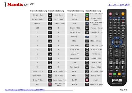 Ein Dokument ist enthalten, um die Verwendung der neuen Fernbedienung zu erleichtern, indem es die Tastenbelegung zeigt.