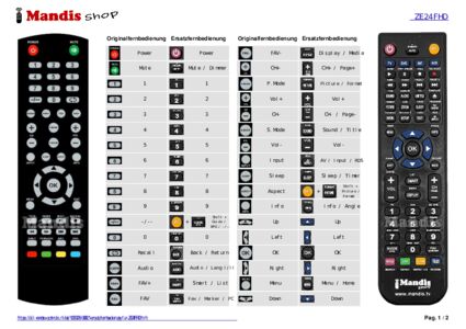 Ein Dokument ist enthalten, um die Verwendung der neuen Fernbedienung zu erleichtern, indem es die Tastenbelegung zeigt.