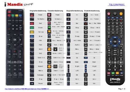 Ein Dokument ist enthalten, um die Verwendung der neuen Fernbedienung zu erleichtern, indem es die Tastenbelegung zeigt.