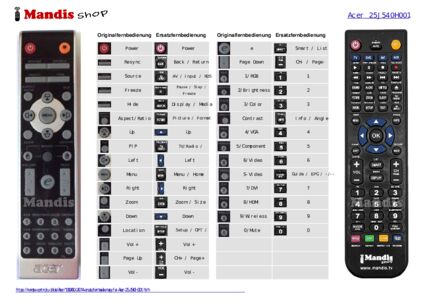 Home > Marken > Fernbedienungen Acer > Fernbedienung für ACER 25.J540H.001