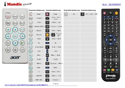 Home > Marken > Fernbedienungen Acer > Fernbedienung für ACER K130 (VZ.JE600.001)
