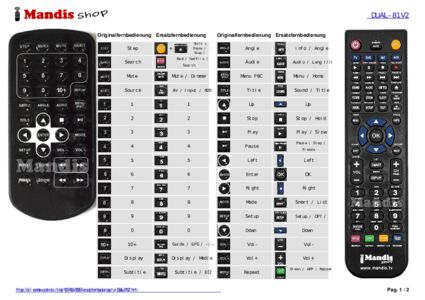 Ein Dokument ist enthalten, um die Verwendung der neuen Fernbedienung zu erleichtern, indem es die Tastenbelegung zeigt.