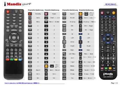 Ein Dokument ist enthalten, um die Verwendung der neuen Fernbedienung zu erleichtern, indem es die Tastenbelegung zeigt.