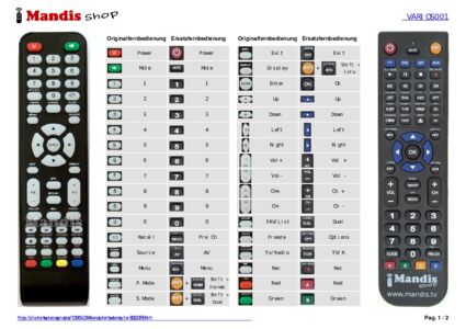 Ein Dokument ist enthalten, um die Verwendung der neuen Fernbedienung zu erleichtern, indem es die Tastenbelegung zeigt.