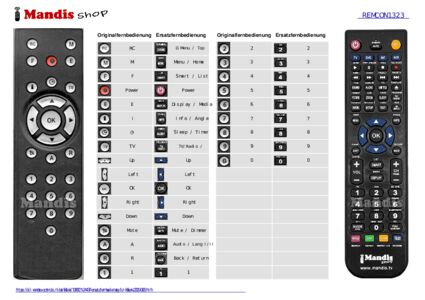 Ein Dokument ist enthalten, um die Verwendung der neuen Fernbedienung zu erleichtern, indem es die Tastenbelegung zeigt.