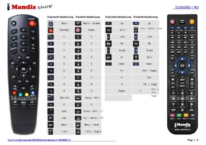 Ein Dokument ist enthalten, um die Verwendung der neuen Fernbedienung zu erleichtern, indem es die Tastenbelegung zeigt.