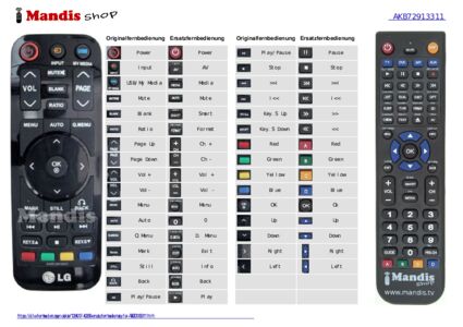 Ein Dokument ist enthalten, um die Verwendung der neuen Fernbedienung zu erleichtern, indem es die Tastenbelegung zeigt.