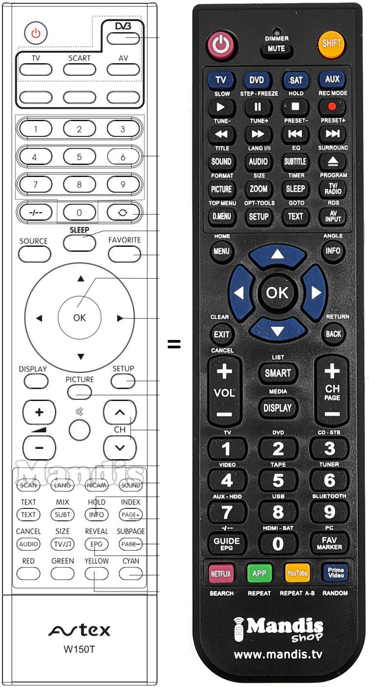Fernbedienung, die das Original und die Gesamtheit seiner Funktionen, vollständig ersetzt. Es handelt sich jedoch nicht um eine Universalfernbedienung sondern um eine Fernbedienung die das Original ersetzt. Sie erhalten eine nach Einlegen der Batterien sofort einsatzbereite Fernbedienung. Jegliches Programmieren entfällt. Wir geben umfassende Garantie dafür, dass diese Fernbedienung alle Funktionen der Originalfernbedienung erfüllt.