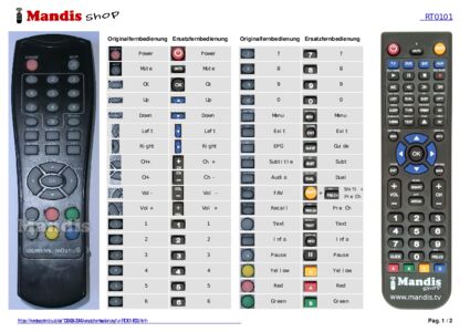 Ein Dokument ist enthalten, um die Verwendung der neuen Fernbedienung zu erleichtern, indem es die Tastenbelegung zeigt.