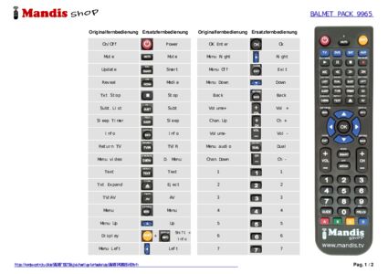 Ein Dokument ist enthalten, um die Verwendung der neuen Fernbedienung zu erleichtern, indem es die Tastenbelegung zeigt.