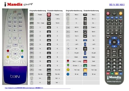 Ein Dokument ist enthalten, um die Verwendung der neuen Fernbedienung zu erleichtern, indem es die Tastenbelegung zeigt.