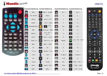 Ein Dokument ist enthalten, um die Verwendung der neuen Fernbedienung zu erleichtern, indem es die Tastenbelegung zeigt.
