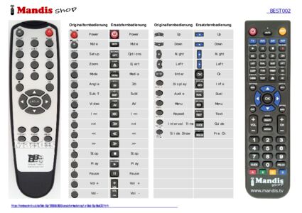 Ein Dokument ist enthalten, um die Verwendung der neuen Fernbedienung zu erleichtern, indem es die Tastenbelegung zeigt.
