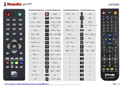 Ein Dokument ist enthalten, um die Verwendung der neuen Fernbedienung zu erleichtern, indem es die Tastenbelegung zeigt.