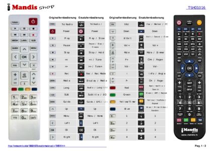 Ein Dokument ist enthalten, um die Verwendung der neuen Fernbedienung zu erleichtern, indem es die Tastenbelegung zeigt.