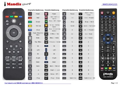Ein Dokument ist enthalten, um die Verwendung der neuen Fernbedienung zu erleichtern, indem es die Tastenbelegung zeigt.