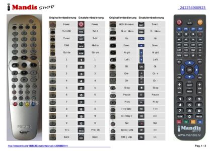 Ein Dokument ist enthalten, um die Verwendung der neuen Fernbedienung zu erleichtern, indem es die Tastenbelegung zeigt.