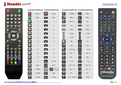 Ein Dokument ist enthalten, um die Verwendung der neuen Fernbedienung zu erleichtern, indem es die Tastenbelegung zeigt.
