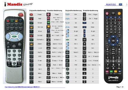 Ein Dokument ist enthalten, um die Verwendung der neuen Fernbedienung zu erleichtern, indem es die Tastenbelegung zeigt.