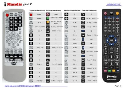 Ein Dokument ist enthalten, um die Verwendung der neuen Fernbedienung zu erleichtern, indem es die Tastenbelegung zeigt.