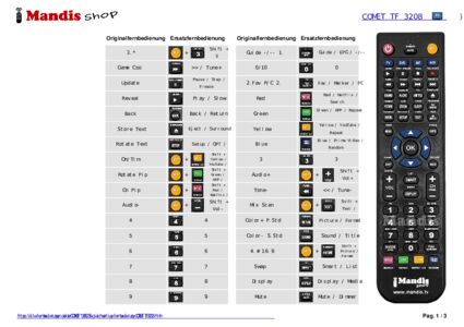Ein Dokument ist enthalten, um die Verwendung der neuen Fernbedienung zu erleichtern, indem es die Tastenbelegung zeigt.