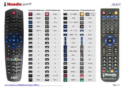 Ein Dokument ist enthalten, um die Verwendung der neuen Fernbedienung zu erleichtern, indem es die Tastenbelegung zeigt.