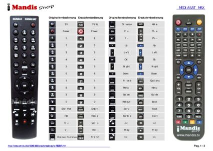 Ein Dokument ist enthalten, um die Verwendung der neuen Fernbedienung zu erleichtern, indem es die Tastenbelegung zeigt.