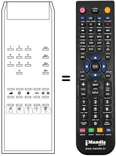 Fernbedienung, die das Original und die Gesamtheit seiner Funktionen, vollständig ersetzt. Es handelt sich jedoch nicht um eine Universalfernbedienung sondern um eine Fernbedienung die das Original ersetzt. Sie erhalten eine nach Einlegen der Batterien sofort einsatzbereite Fernbedienung. Jegliches Programmieren entfällt. Wir geben umfassende Garantie dafür, dass diese Fernbedienung alle Funktionen der Originalfernbedienung erfüllt.
